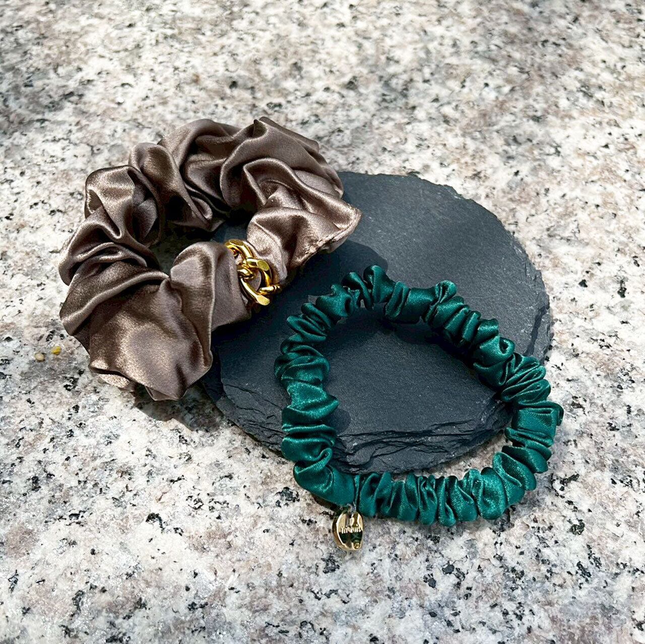 肌触りの良いシルク素材で作られた、美しさと使いやすさを兼ね備えたSILKシュシュ。